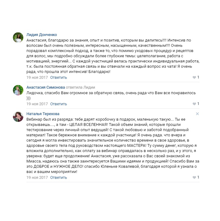 + Автор курса по уходу за волосами "Натуральный уход для шикарных волос"
